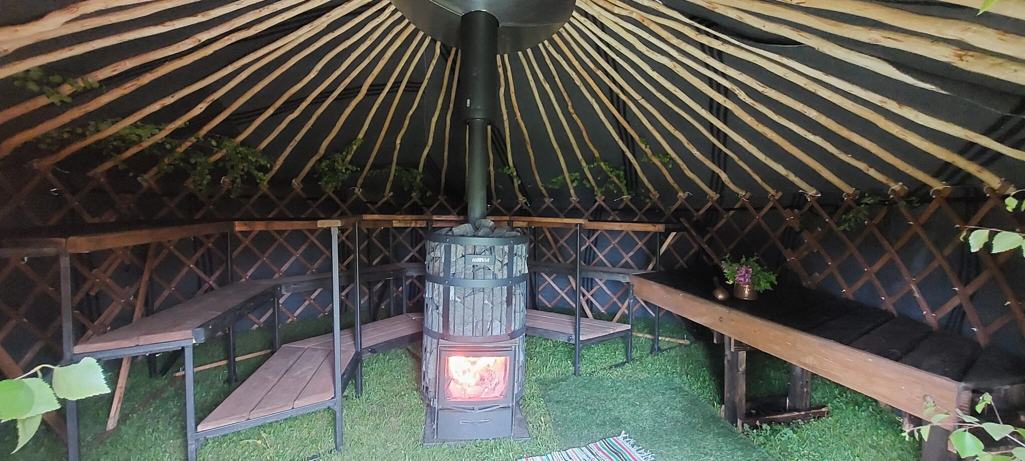 - The yurt sauna invites you to gentle warmth, where the peace of nature and the mysterious ancient atmosphere of the yurt merge together.
