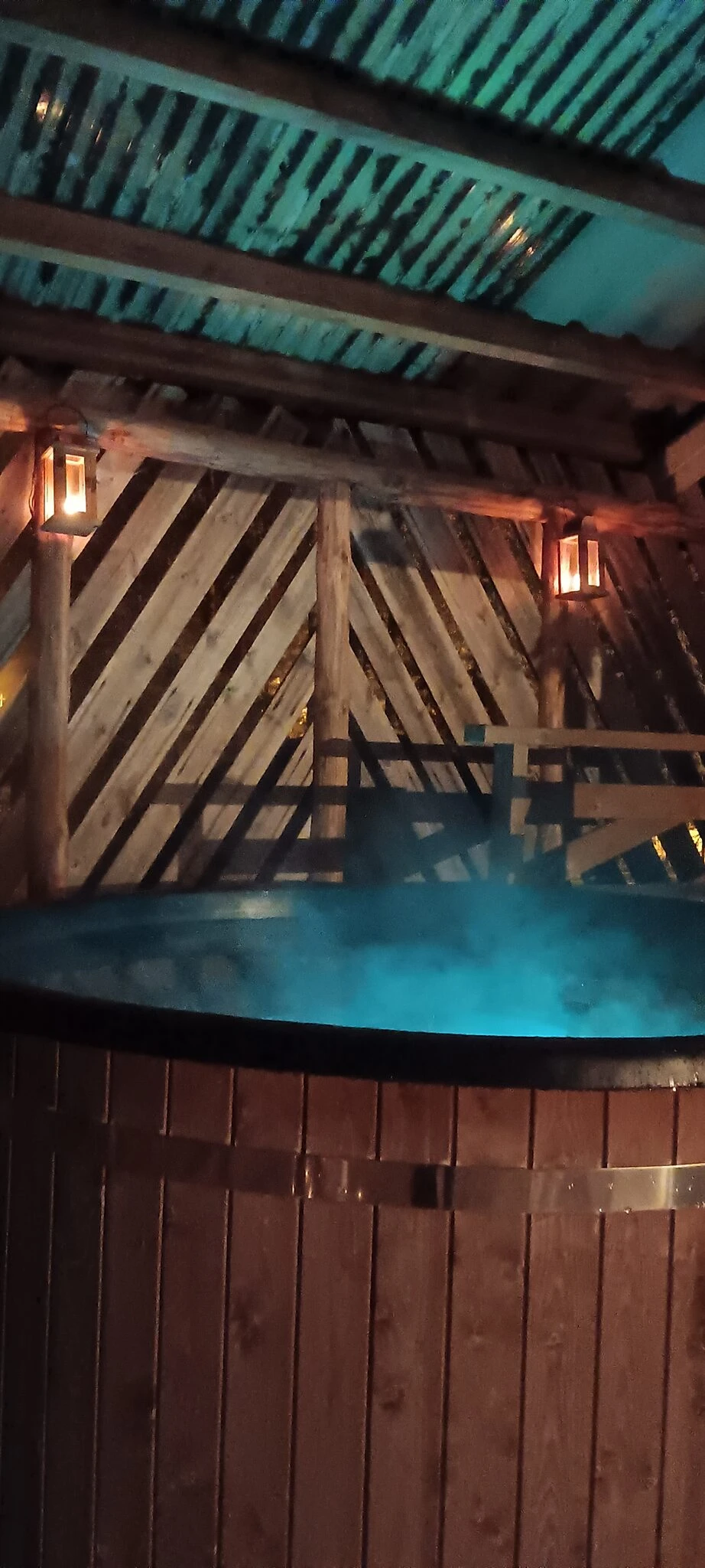 - Hot tub under the starry sky, inviting you to relax and enjoy a moment together.